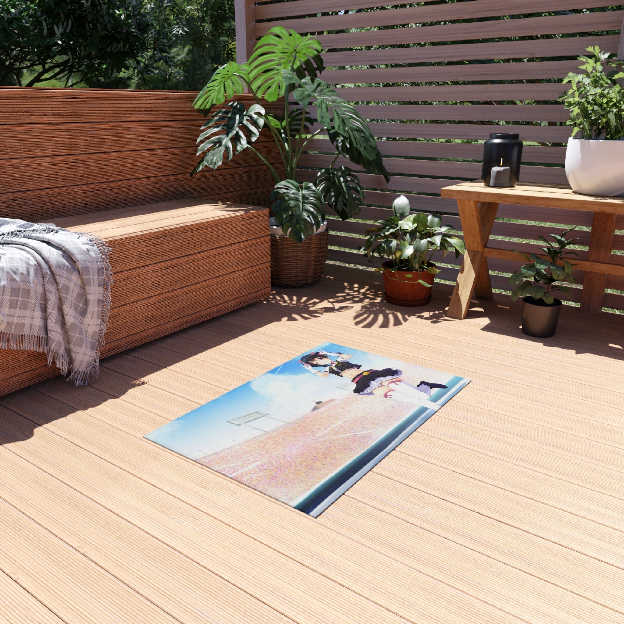 This area rug is crafted with durable construction and hemmed edges, offering lasting quality and style. A coated backing keeps the piece in place, making it the perfect finishing touch for any interior design. Vibrant colors and anime allow you to effortlessly match your existing aesthetic.