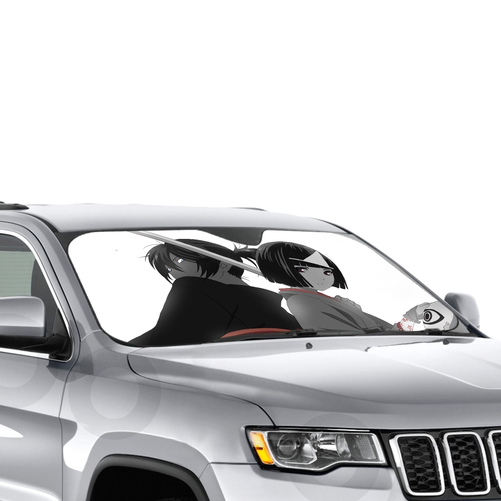 Showcase your favorite anime and protect your car's interior with this premium sunshade that blends vibrant fan art with essential protection.