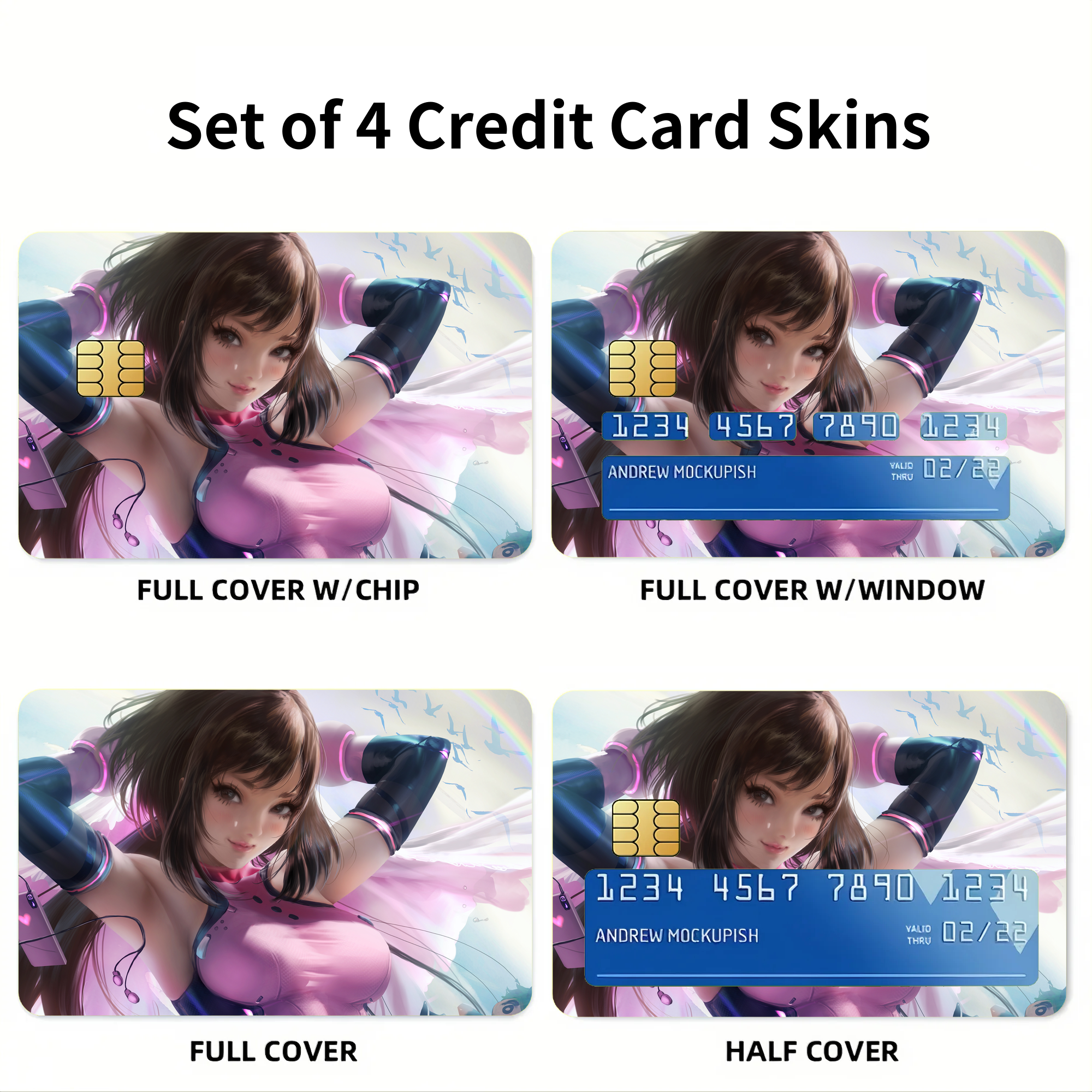 This complete 4-in-1 skin pack includes a Full Cover, Full Cover with a Chip Cutout, Full Cover with a Number Window and Half Cover.