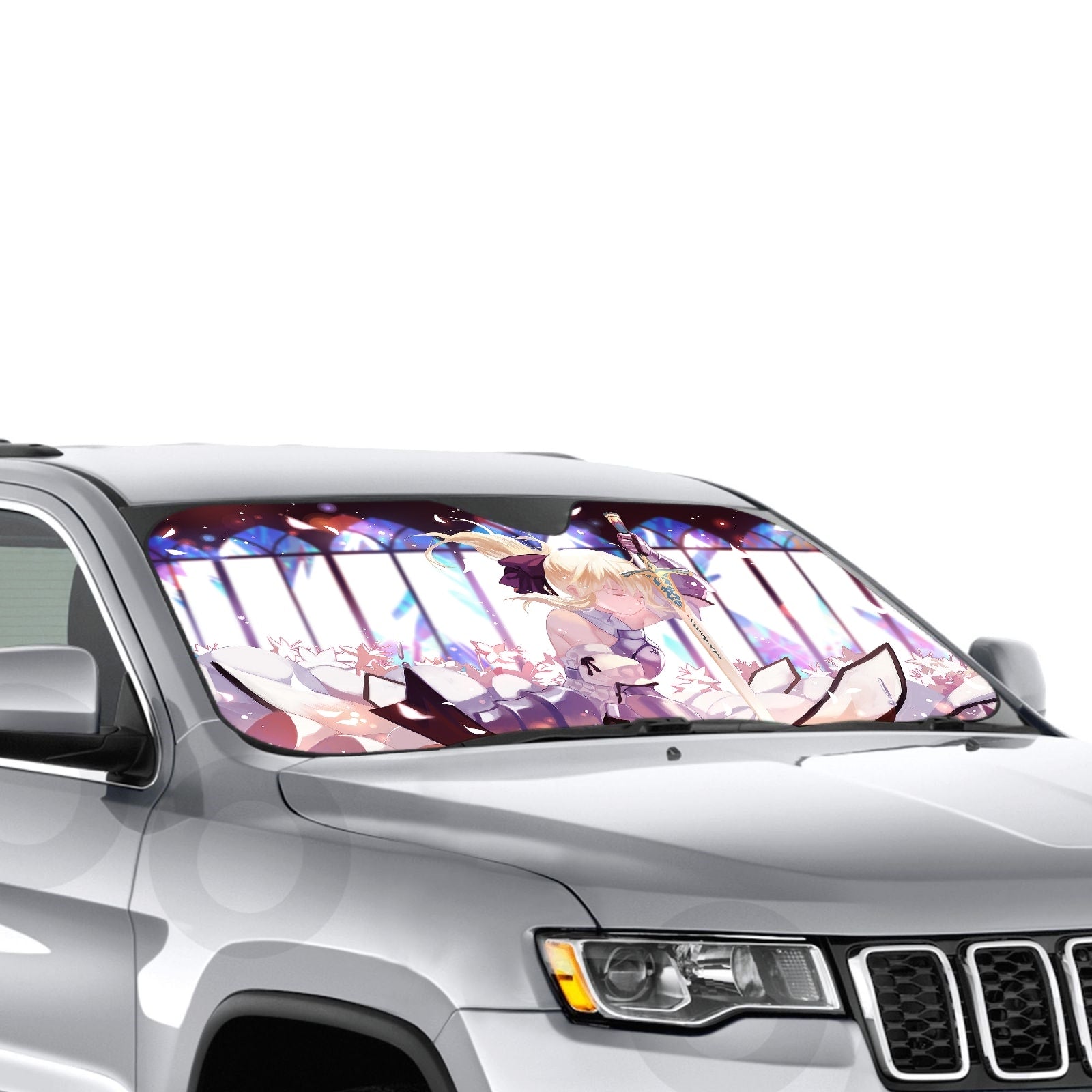 Showcase your favorite anime and protect your car's interior with this premium sunshade that blends vibrant fan art with essential protection.