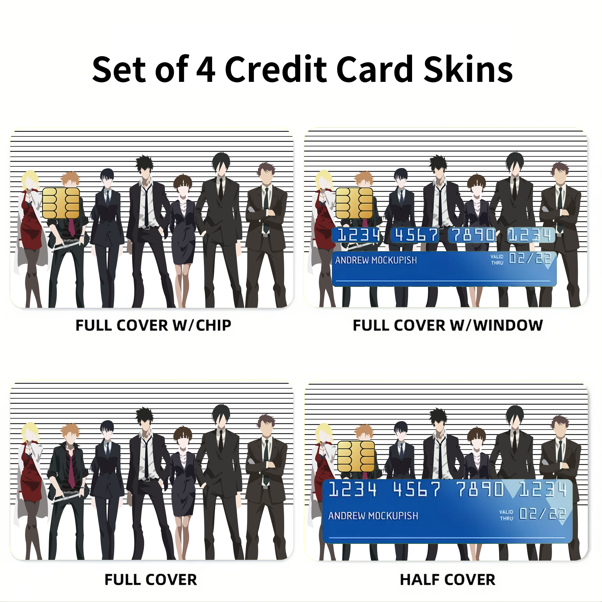 • Load image into Gallery viewer, Psycho-Pass Akane Tsunemori, Nobuchika Ginoza, Shuusei Kagari, Tomomi Masaoka, Shion Karanomori  Credit Card Skins (4-in-1 Pack)