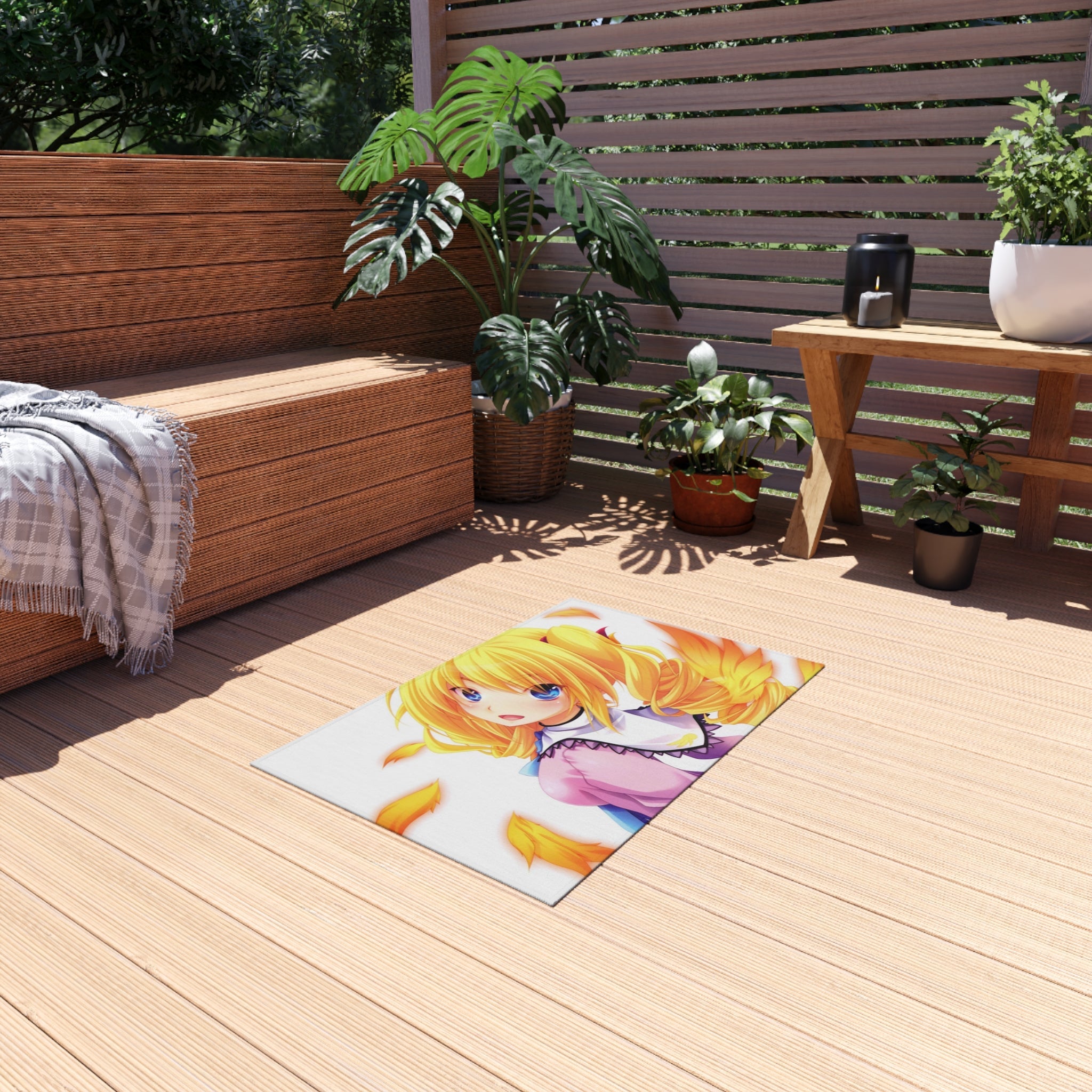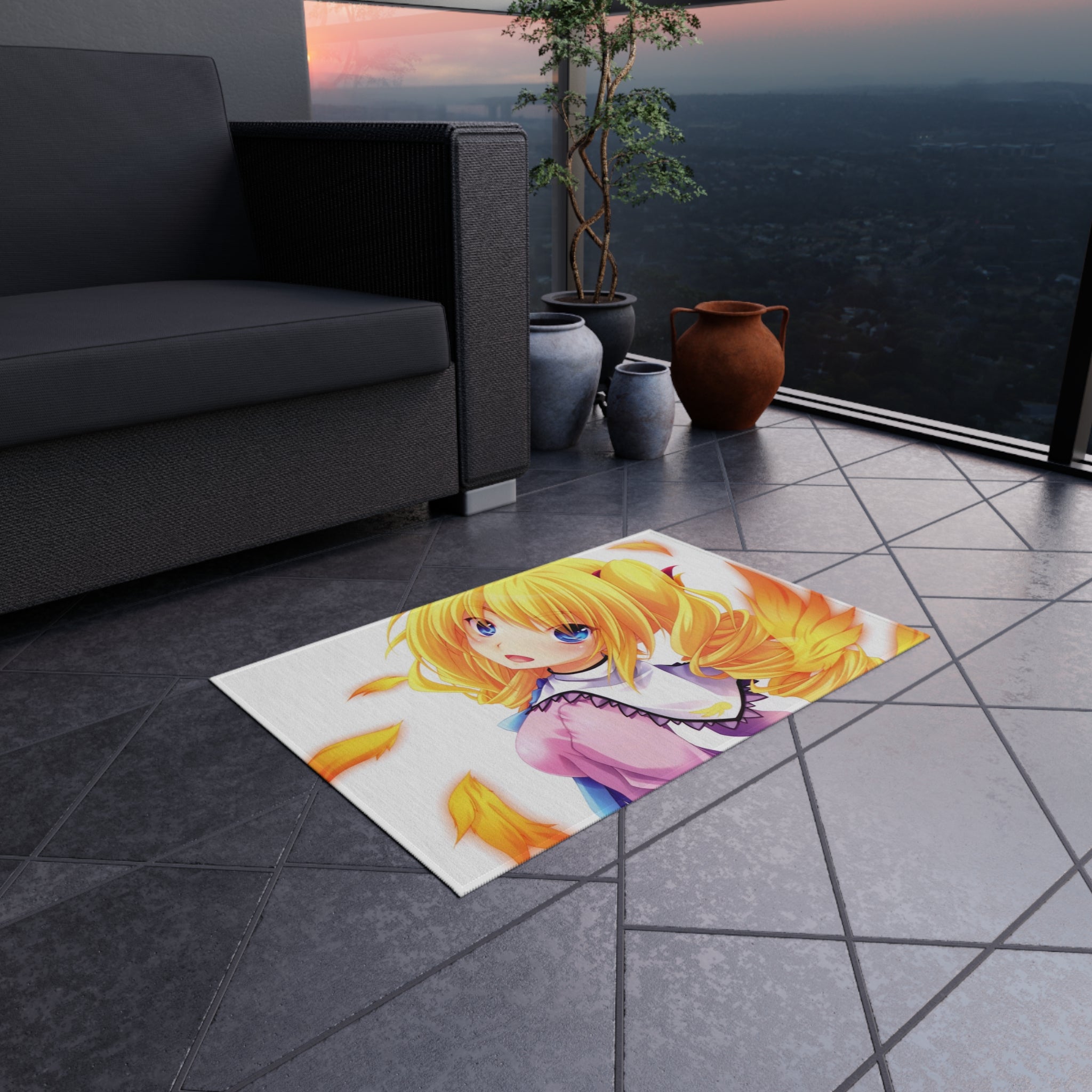 This area rug is crafted with durable construction and hemmed edges, offering lasting quality and style. A coated backing keeps the piece in place, making it the perfect finishing touch for any interior design. Vibrant colors and anime allow you to effortlessly match your existing aesthetic.
