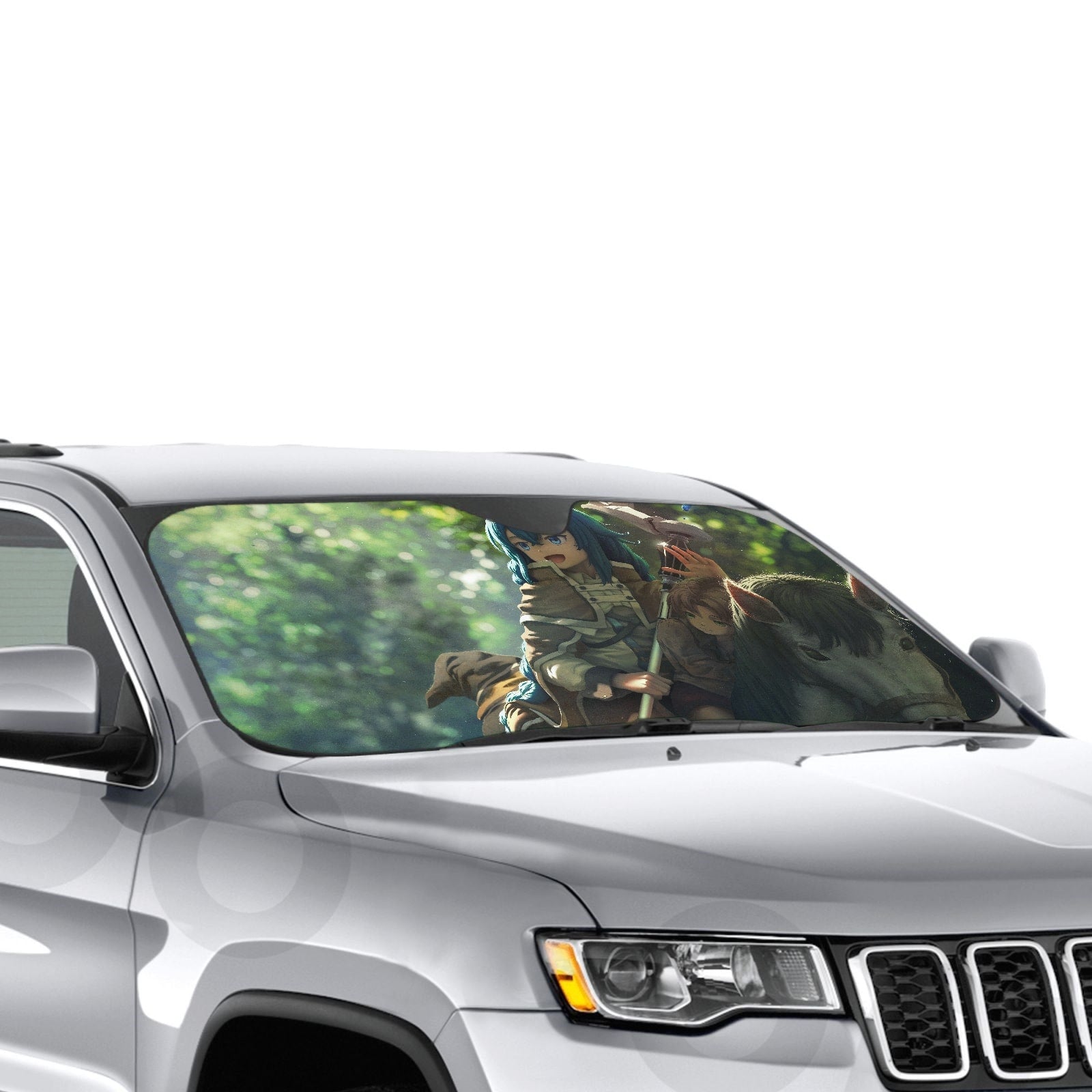 Showcase your favorite anime and protect your car's interior with this premium sunshade that blends vibrant fan art with essential protection.