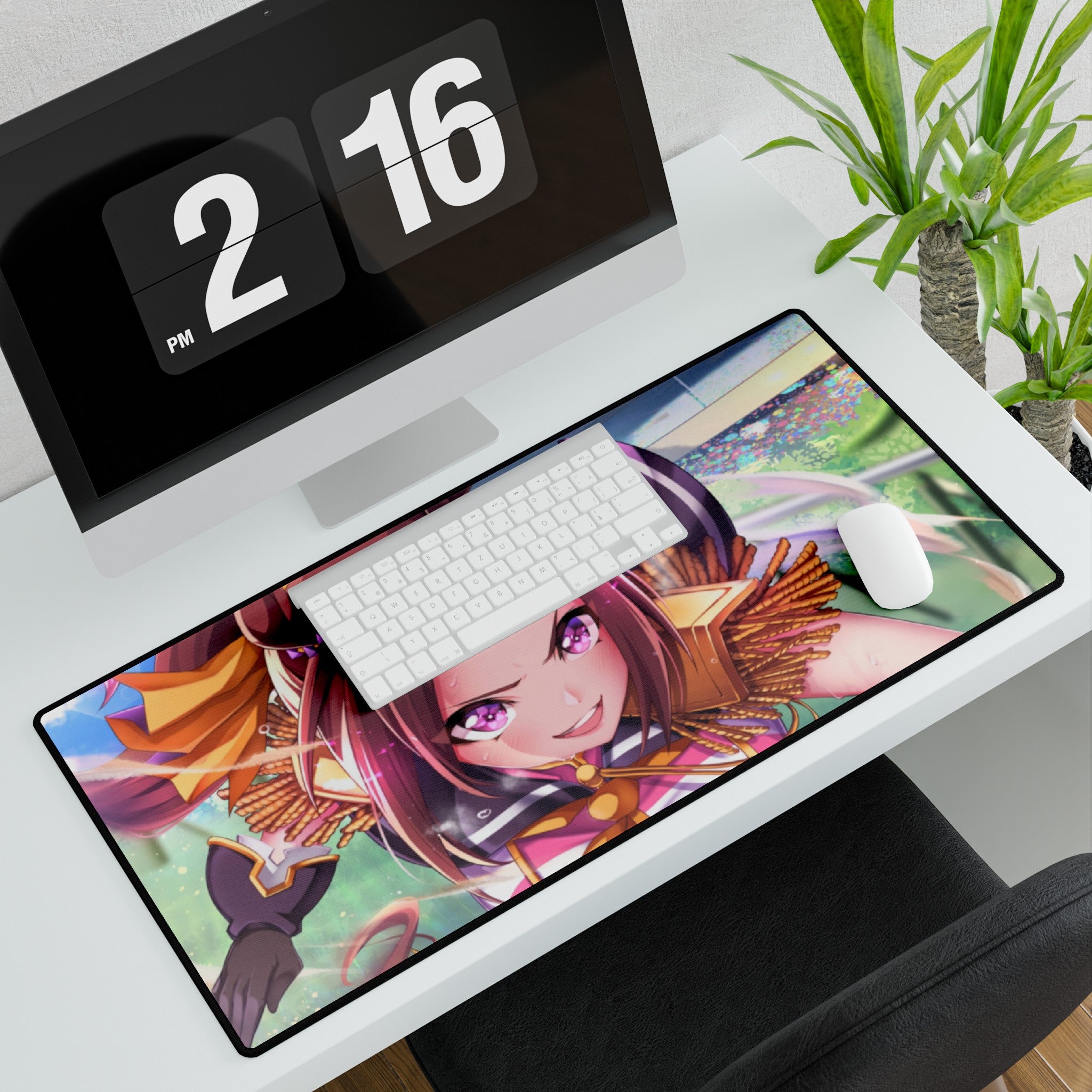 This mouse pad (desk mat) is perfect for that extra personal touch at work or in your home office. Made of polyester and rubber, it has an anti-slip backing and a hemmed edge for durability and stability.
