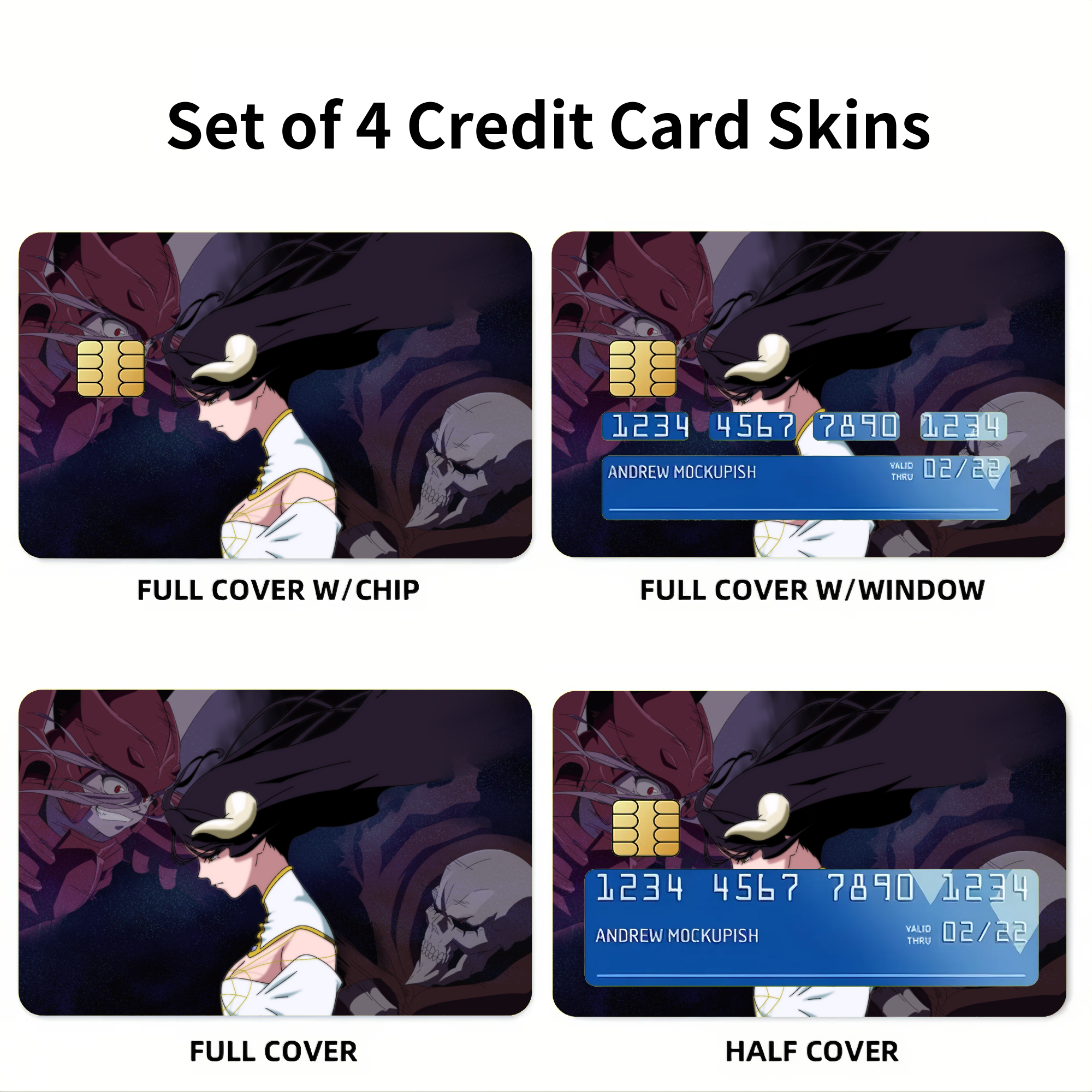 Shalltear,Albedo and Ainz Ooal Gown Credit Card Skins (4-in-1 Pack)