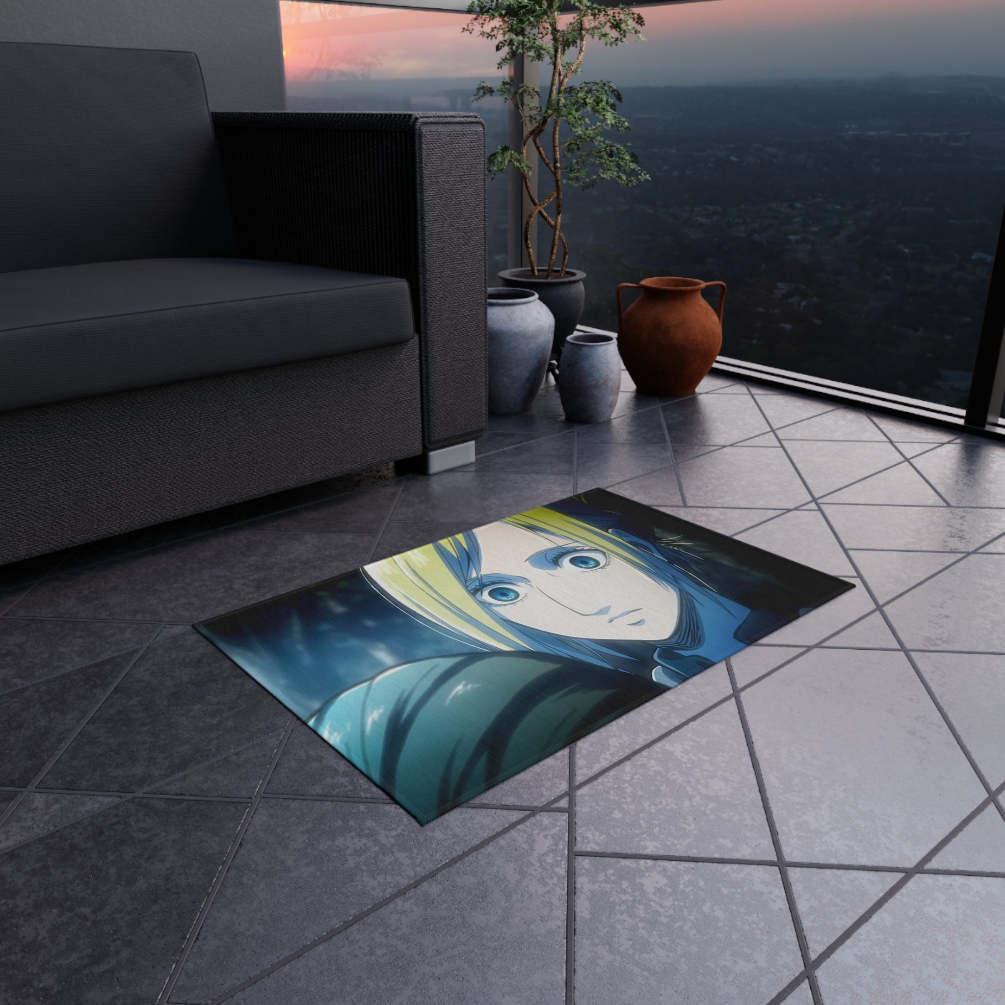 This area rug is crafted with durable construction and hemmed edges, offering lasting quality and style. A coated backing keeps the piece in place, making it the perfect finishing touch for any interior design. Vibrant colors and anime allow you to effortlessly match your existing aesthetic.