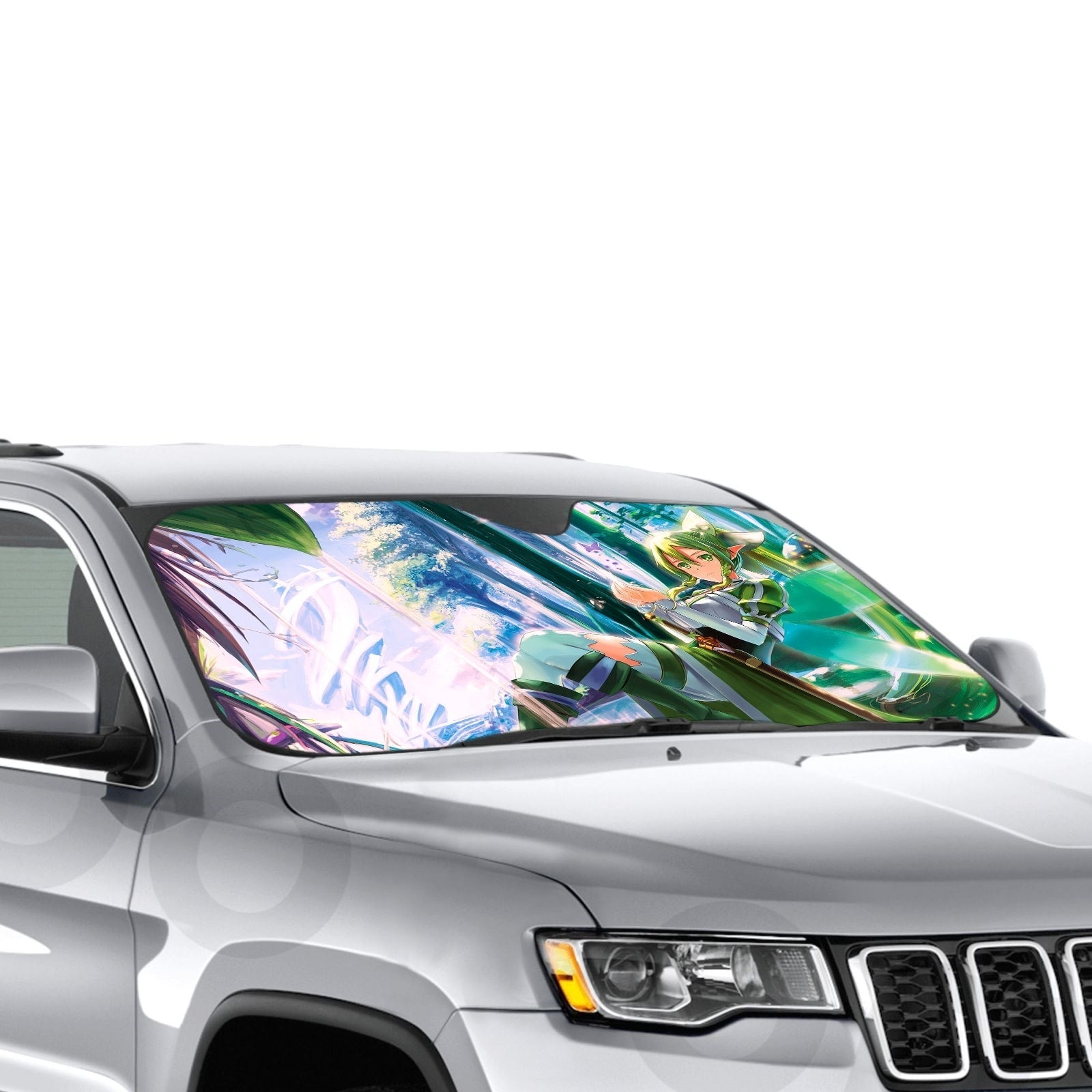 Showcase your favorite anime and protect your car's interior with this premium sunshade that blends vibrant fan art with essential protection.