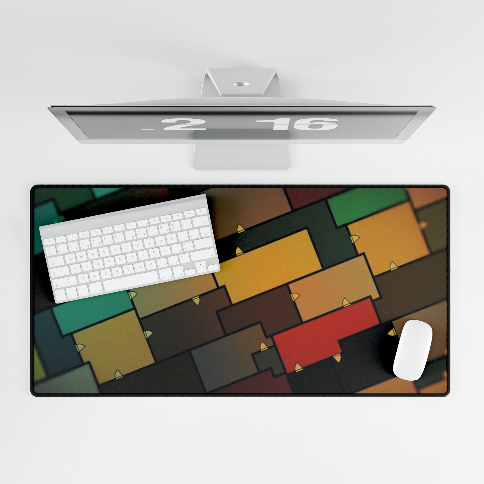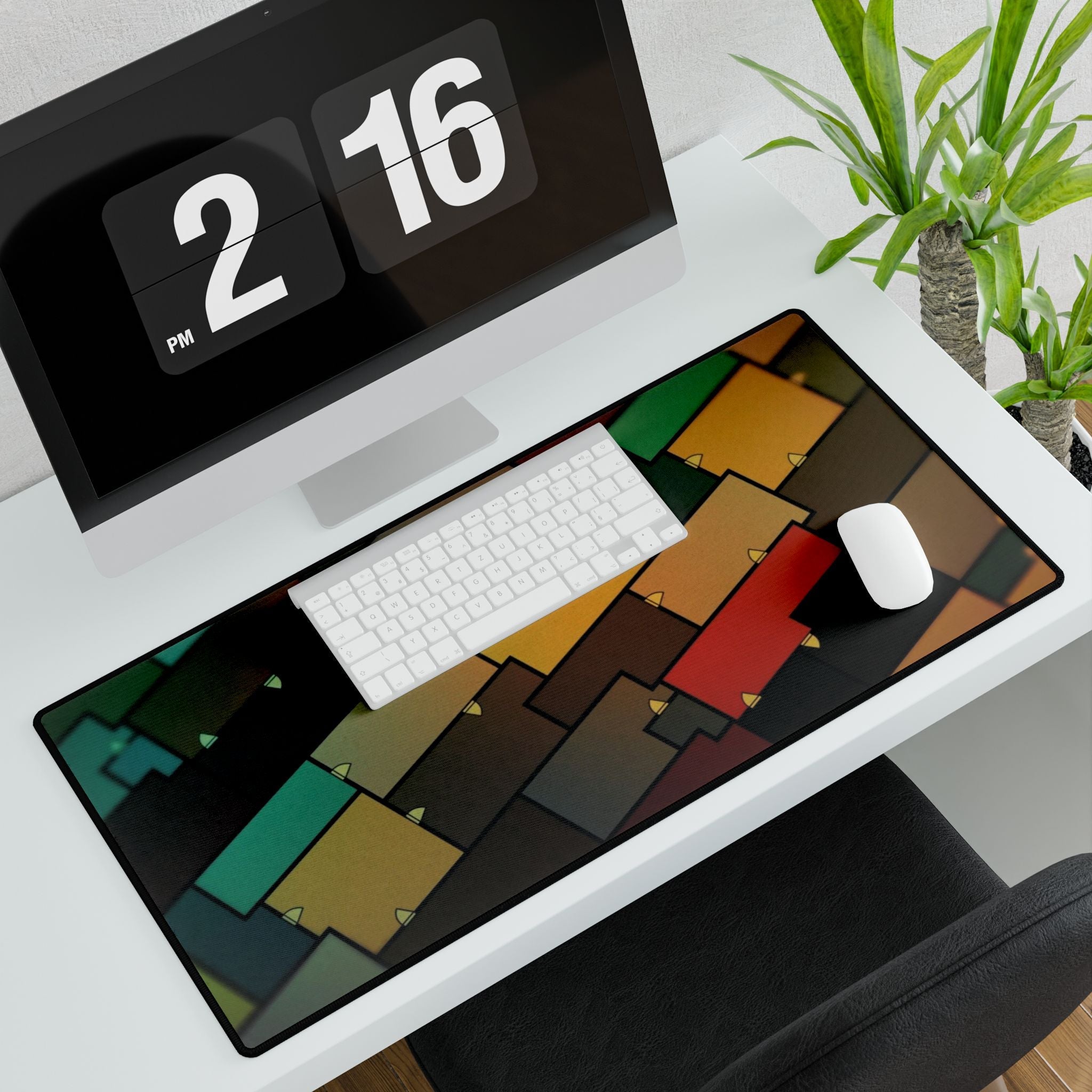 This mouse pad (desk mat) is perfect for that extra personal touch at work or in your home office. Made of polyester and rubber, it has an anti-slip backing and a hemmed edge for durability and stability.