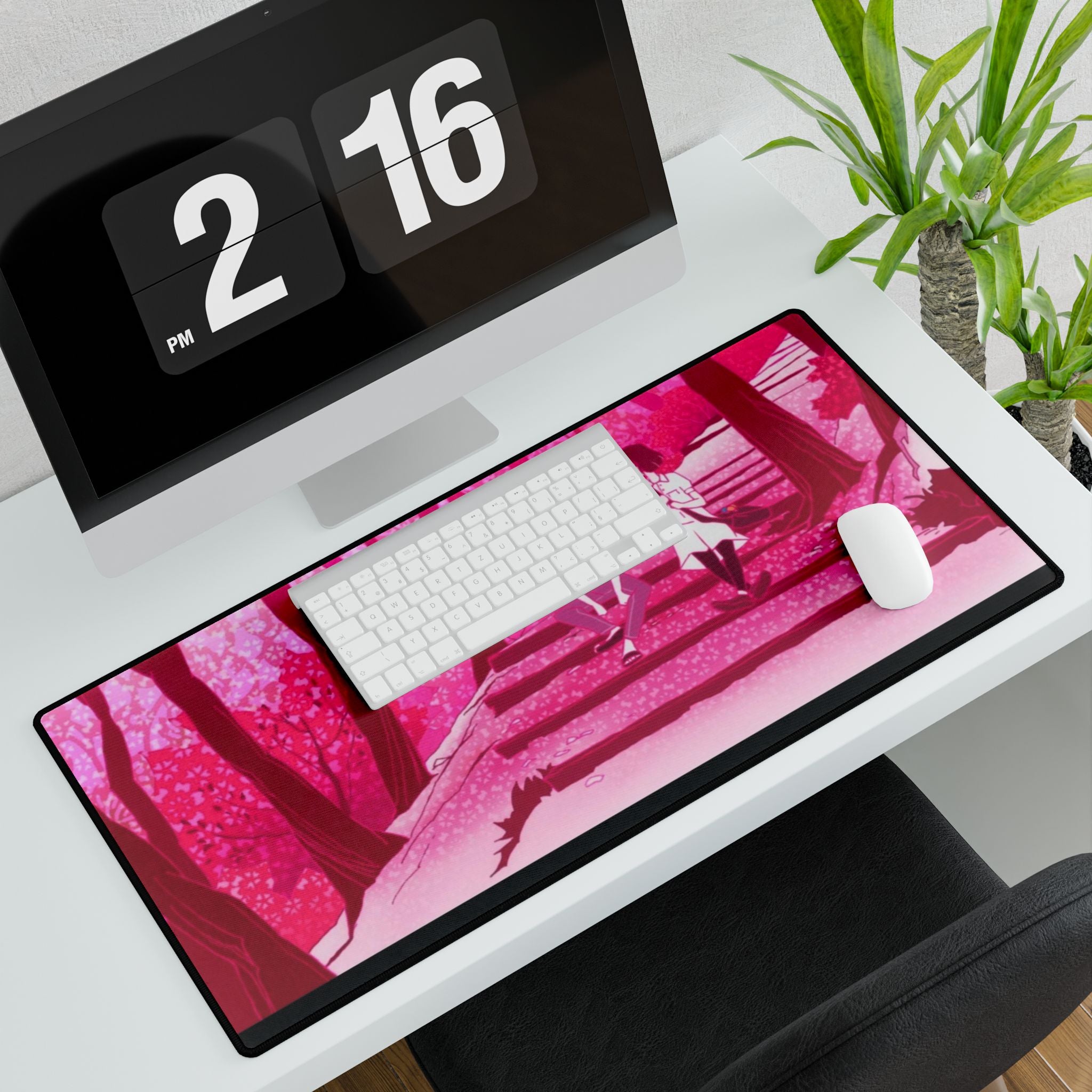 This mouse pad (desk mat) is perfect for that extra personal touch at work or in your home office. Made of polyester and rubber, it has an anti-slip backing and a hemmed edge for durability and stability.
