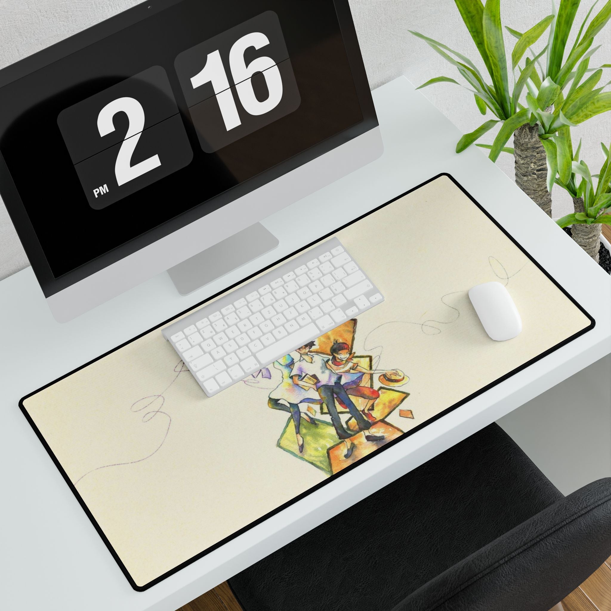 This mouse pad (desk mat) is perfect for that extra personal touch at work or in your home office. Made of polyester and rubber, it has an anti-slip backing and a hemmed edge for durability and stability.