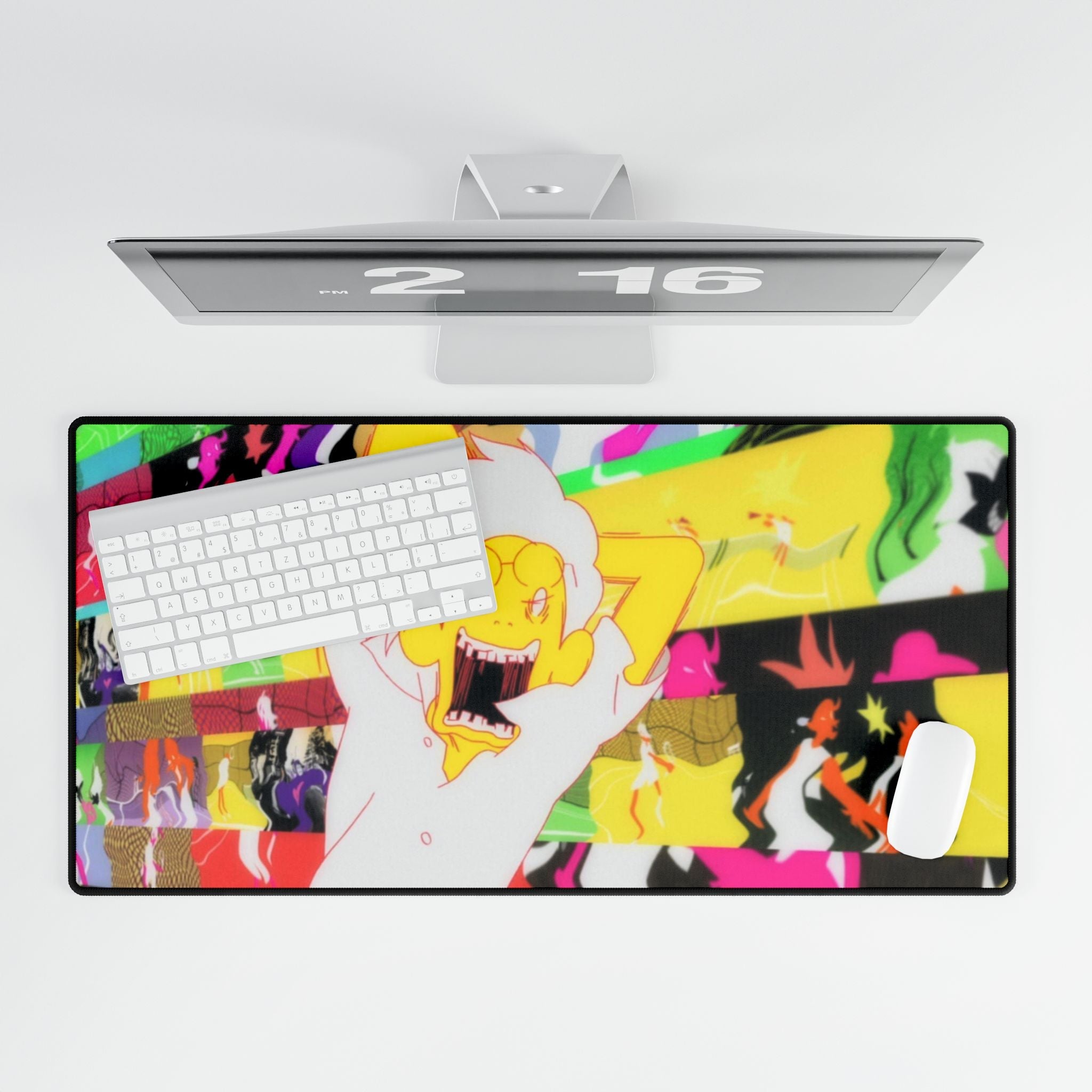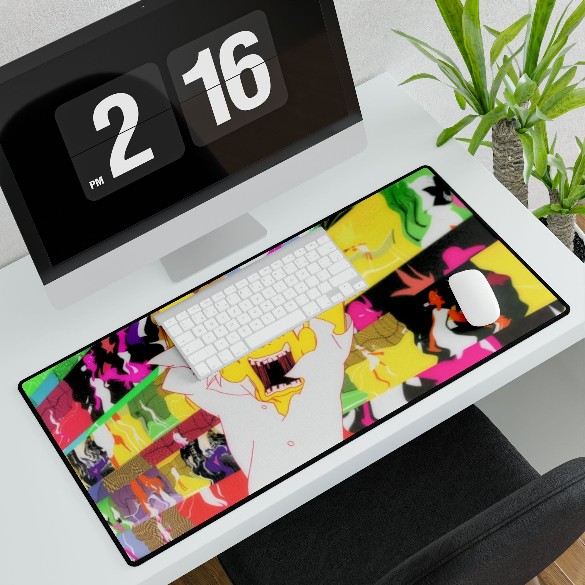 This mouse pad (desk mat) is perfect for that extra personal touch at work or in your home office. Made of polyester and rubber, it has an anti-slip backing and a hemmed edge for durability and stability.