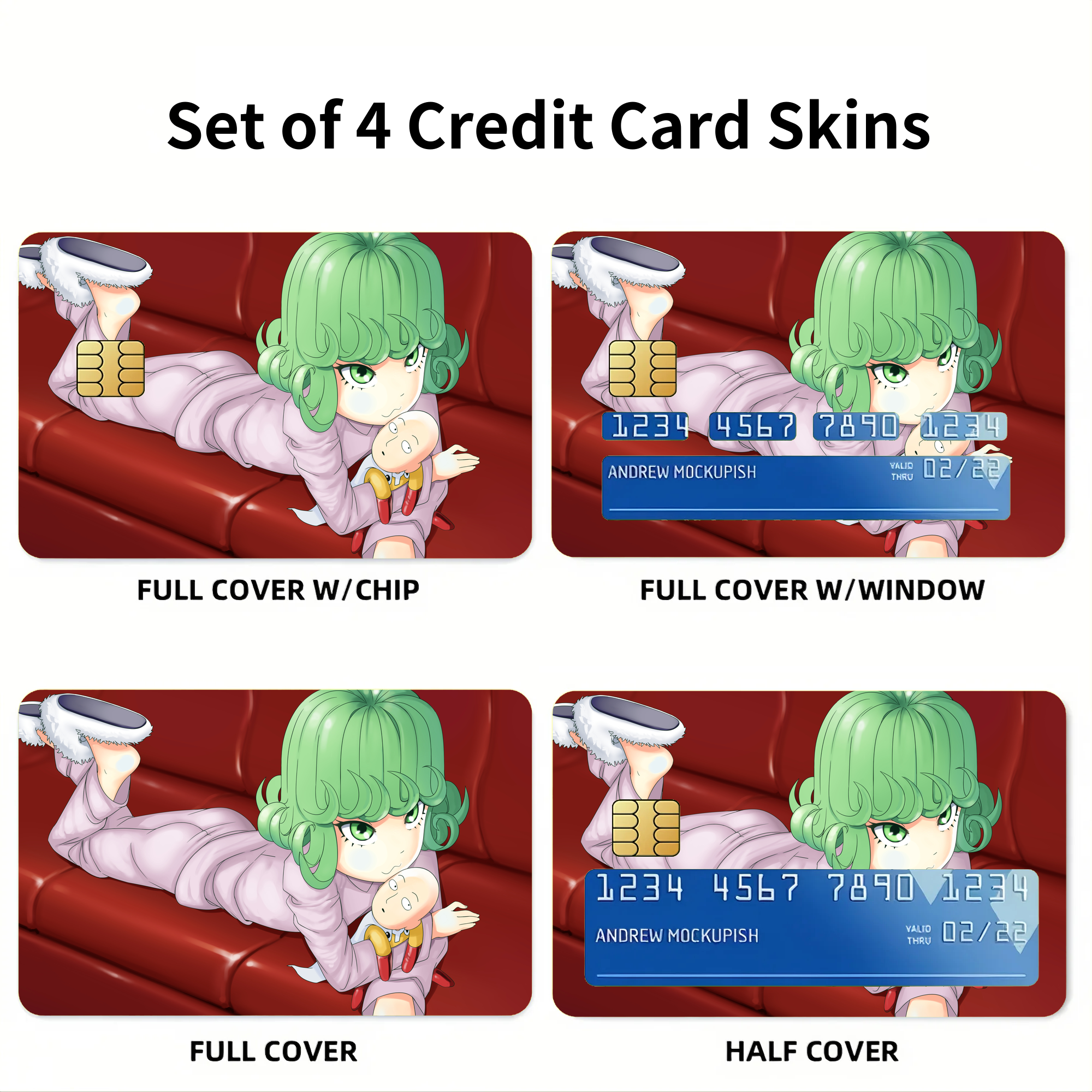 Tatsumaki (and Saitama) Credit Card Skins (4-in-1 Pack)