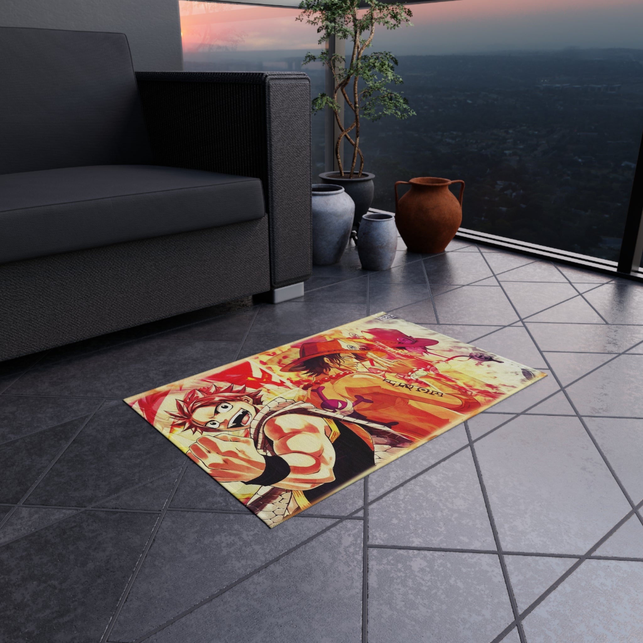 This area rug is crafted with durable construction and hemmed edges, offering lasting quality and style. A coated backing keeps the piece in place, making it the perfect finishing touch for any interior design. Vibrant colors and anime allow you to effortlessly match your existing aesthetic.