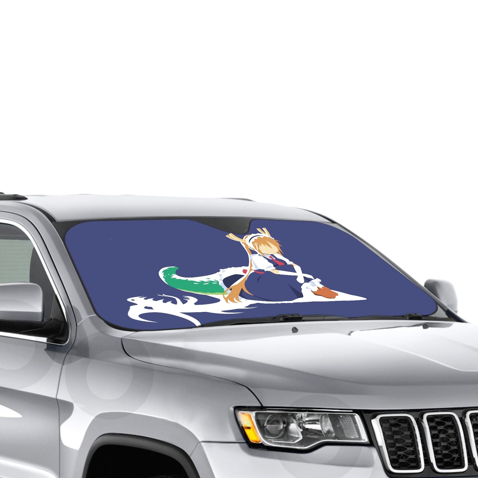 Showcase your favorite anime and protect your car's interior with this premium sunshade that blends vibrant fan art with essential protection.