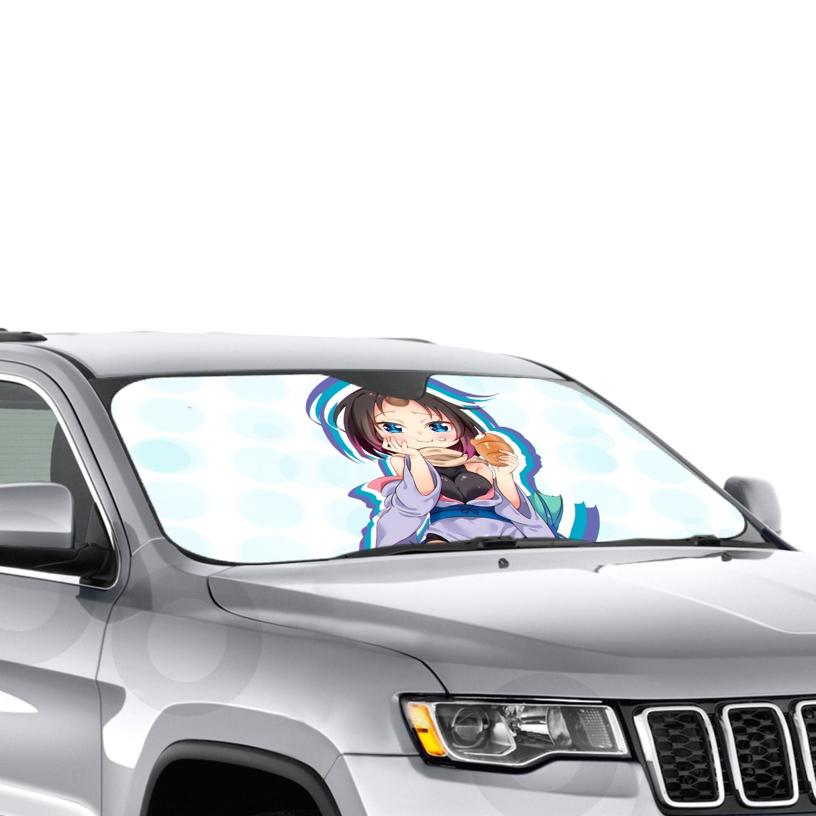 Showcase your favorite anime and protect your car's interior with this premium sunshade that blends vibrant fan art with essential protection.