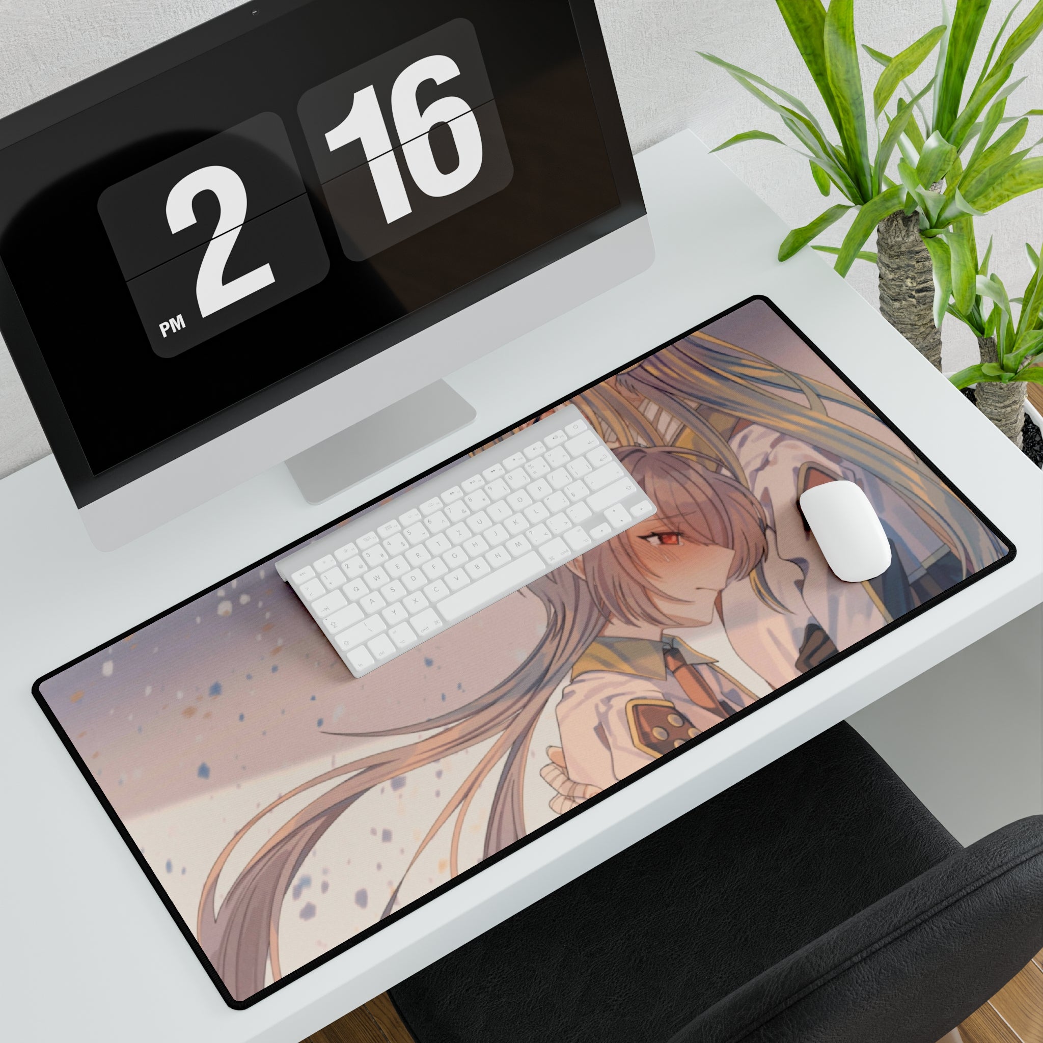 This mouse pad (desk mat) is perfect for that extra personal touch at work or in your home office. Made of polyester and rubber, it has an anti-slip backing and a hemmed edge for durability and stability.