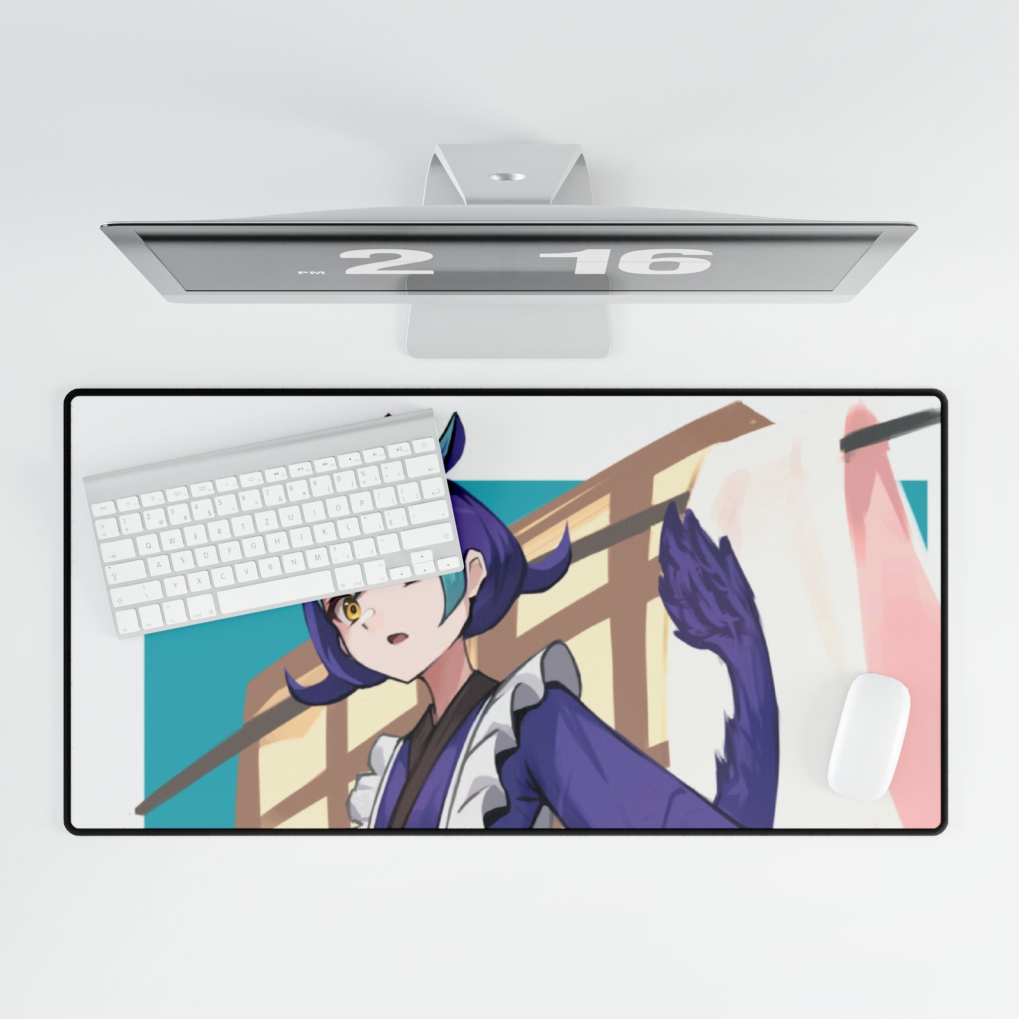 This mouse pad (desk mat) is perfect for that extra personal touch at work or in your home office. Made of polyester and rubber, it has an anti-slip backing and a hemmed edge for durability and stability.