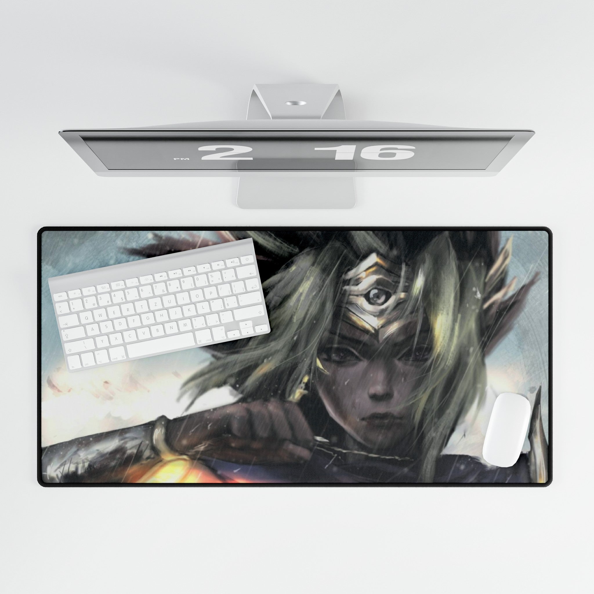 This mouse pad (desk mat) is perfect for that extra personal touch at work or in your home office. Made of polyester and rubber, it has an anti-slip backing and a hemmed edge for durability and stability.