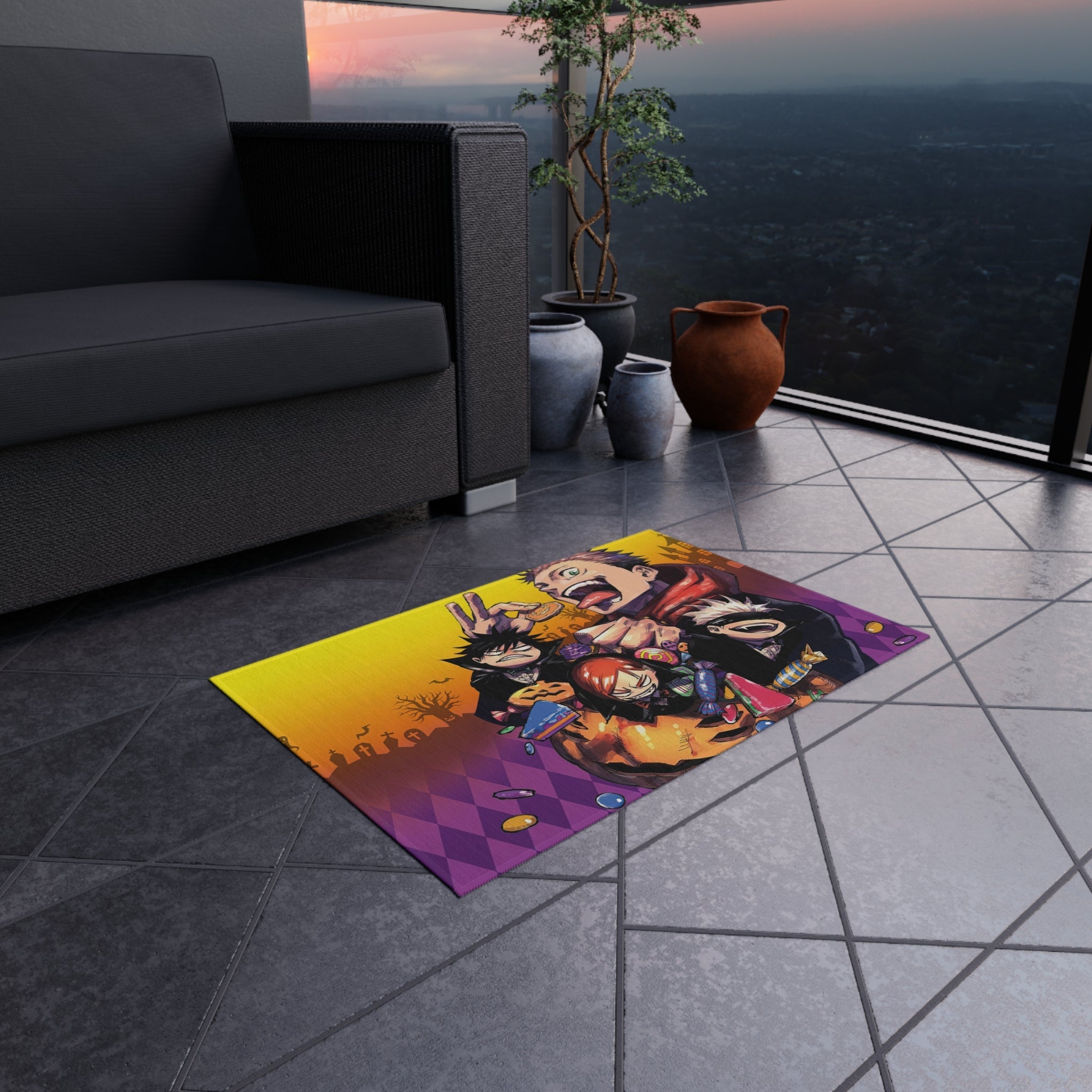 Yuji Itadori Satoru Gojo Nobara Kugisaki Megumi Fushiguro and Blindfold Rug