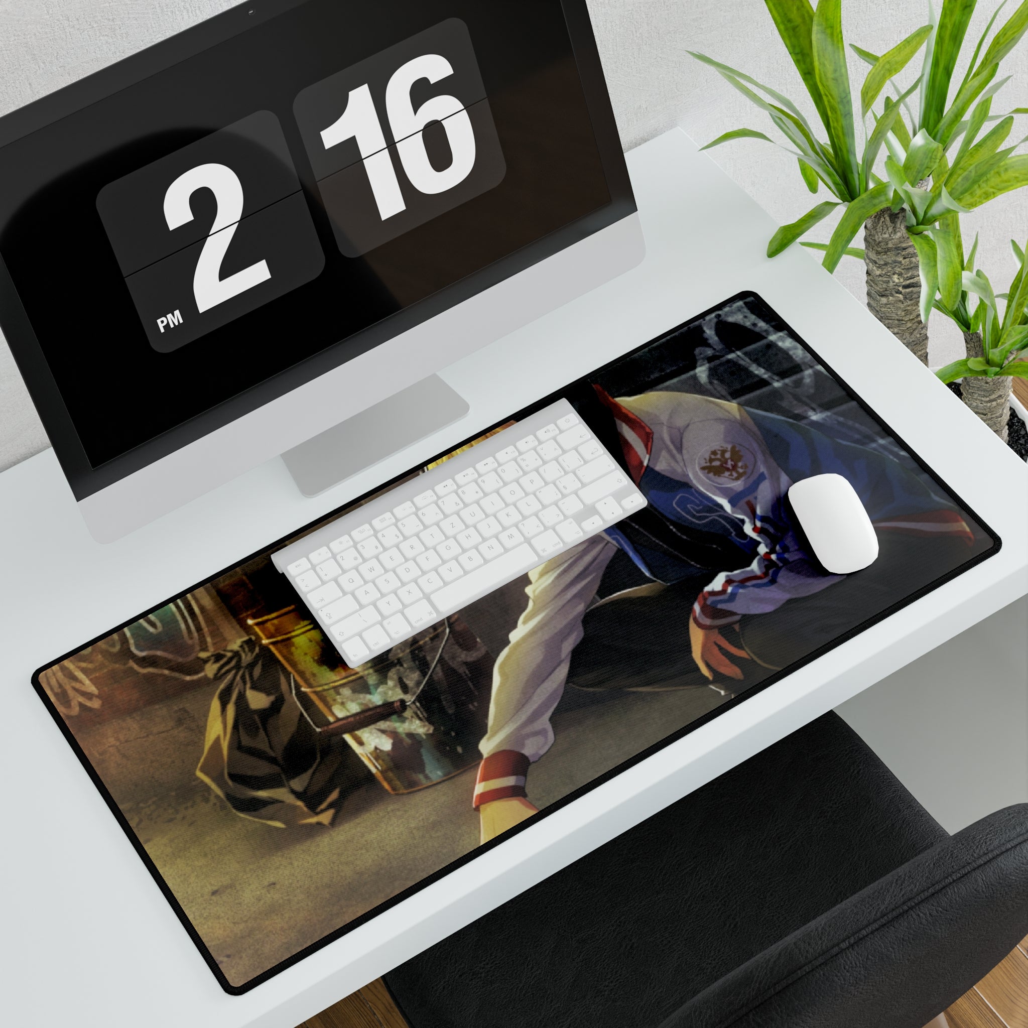 This mouse pad (desk mat) is perfect for that extra personal touch at work or in your home office. Made of polyester and rubber, it has an anti-slip backing and a hemmed edge for durability and stability.