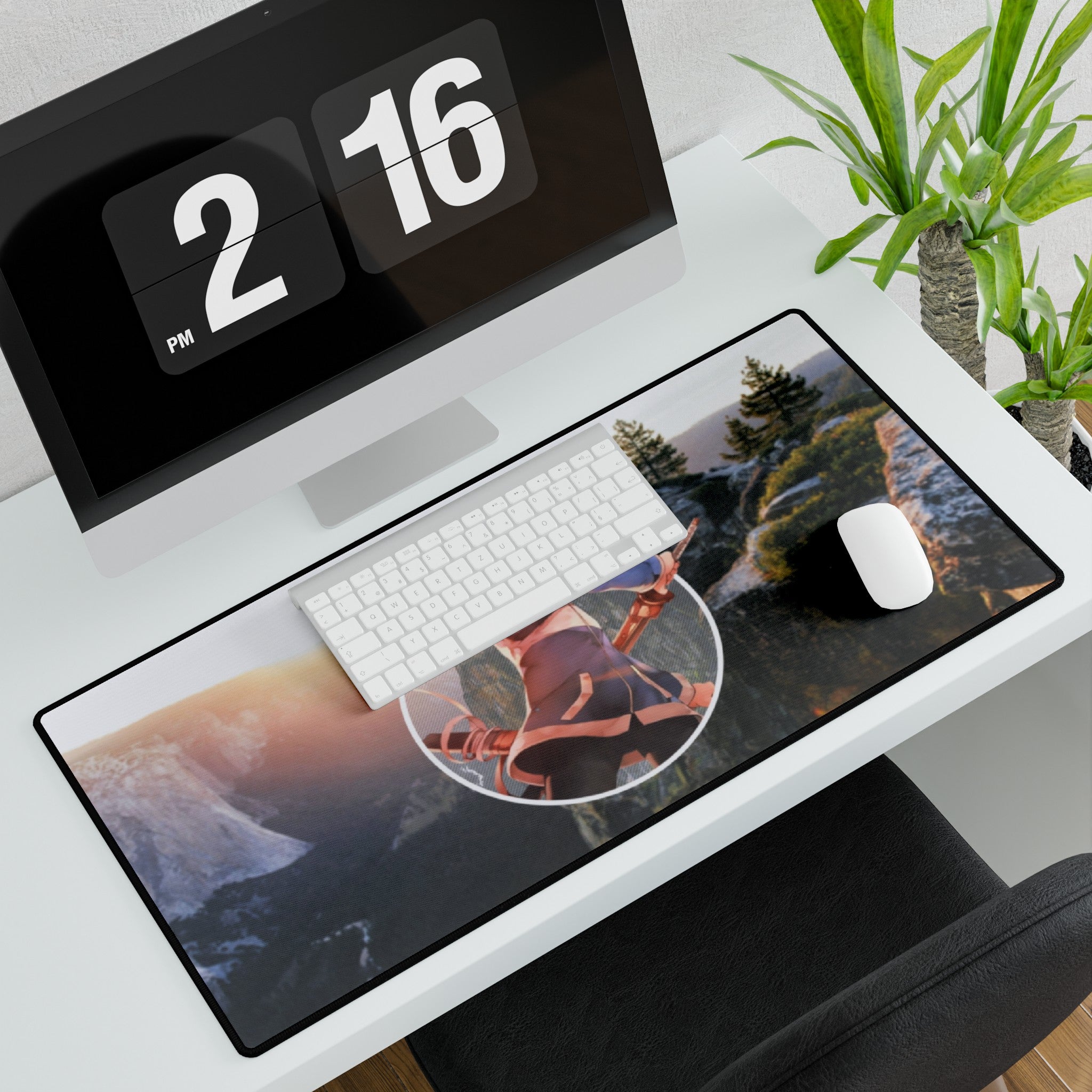 This mouse pad (desk mat) is perfect for that extra personal touch at work or in your home office. Made of polyester and rubber, it has an anti-slip backing and a hemmed edge for durability and stability.